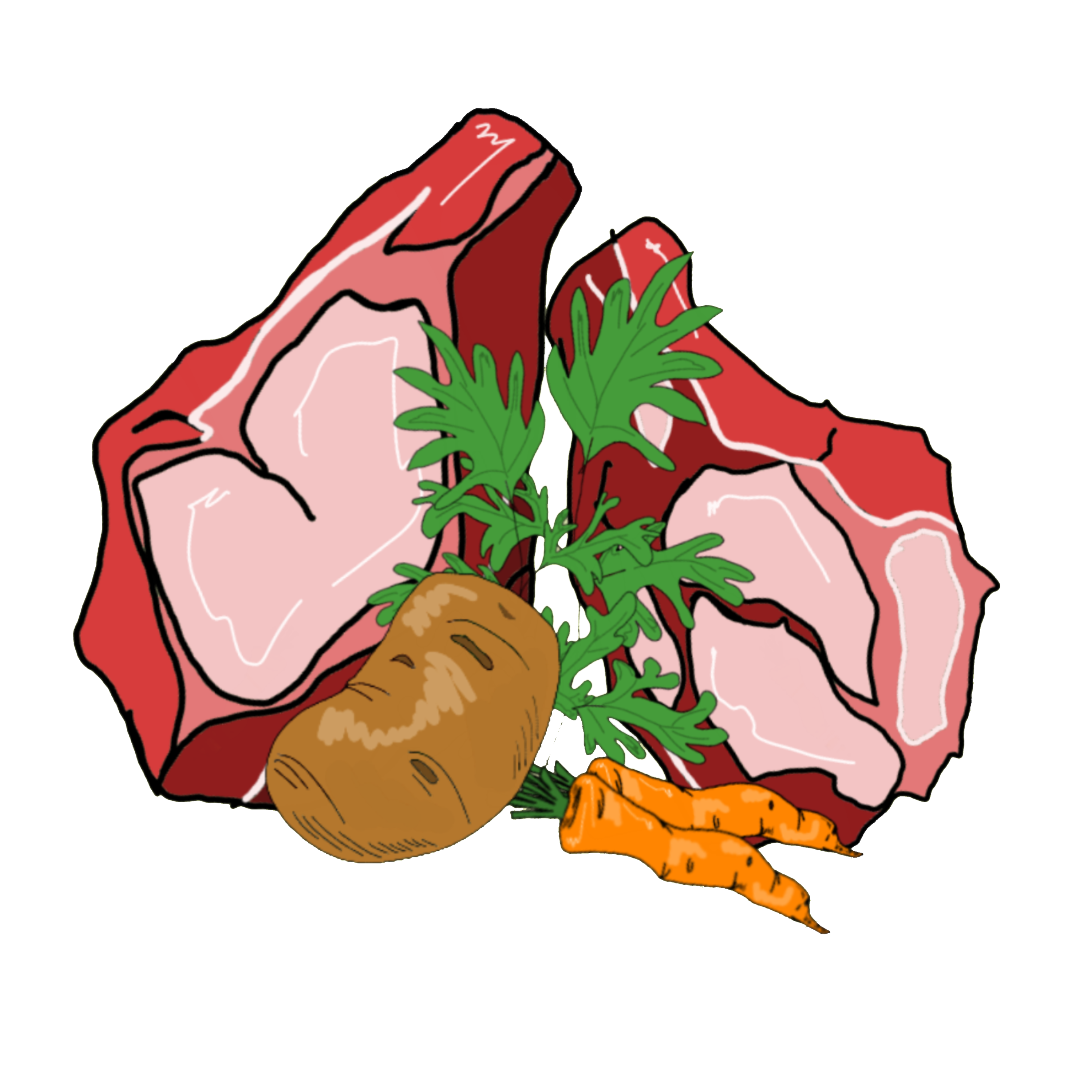 Lamb ribs (no bones), potatoes, carrot.